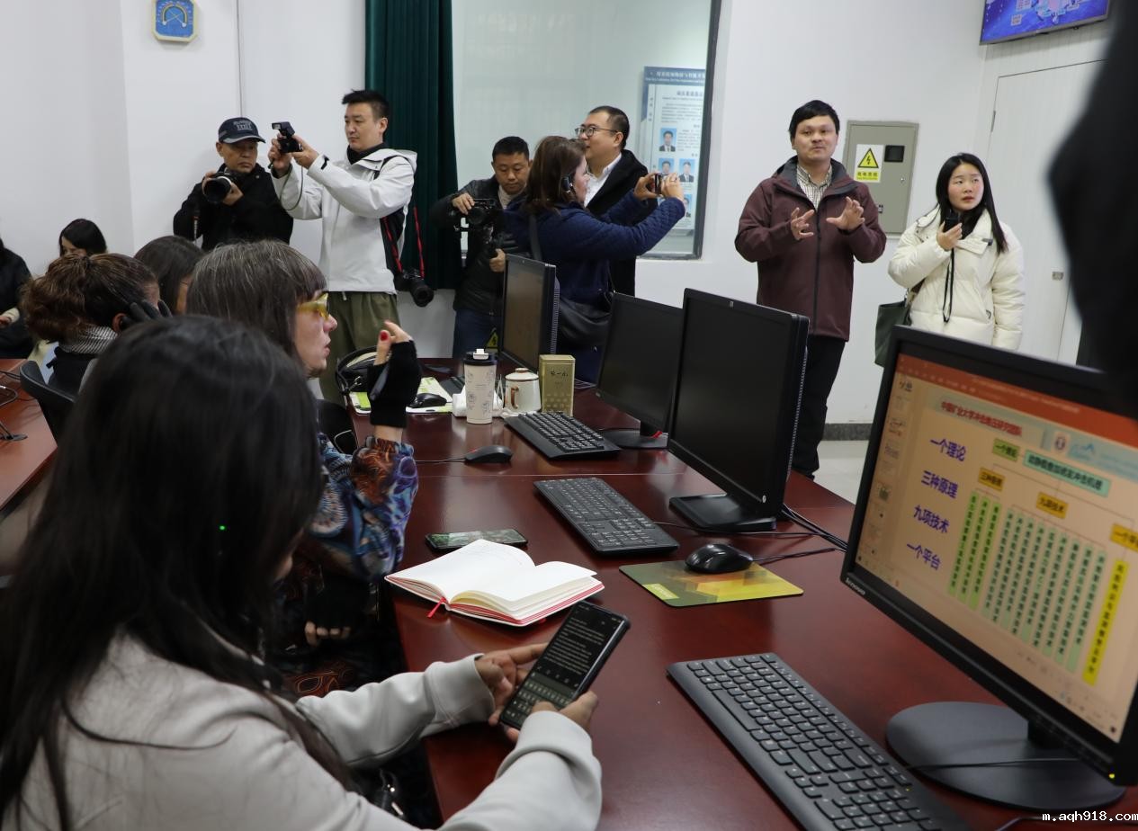 外媒记者团参观了实验室核心科研平台,深入了解实验室在煤炭精细勘探与智能开采技术领域取得的重大进展。肖栋老师从实验室建设发展历程、研究方向、特色优势、研究团队、重大科研成果等方面向拉美记者团一行进行了讲解,带领参观了雷竞技iphone下载的科学采矿、智能采矿、微生物采矿国际联合实验室,重点介绍了雷竞技提现成功没到账中阿微生物采矿与土壤生态修复联合研究中心开展的科研合作、取得的进展,并进行了微生物采矿、生物制氢技术的实验演示;蔡武研究员介绍了冲击地压远程监控云平台,以智能算法实现空间和时序双维度的智能准确预警,将矿山安全防治提升到新高度。